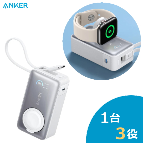 Anker MagGo 10000mAh Apple Watch iPhone アップルウォッチ充電器 急速充電 ワイヤレス充電 モバイルバッテリー アンカー マグゴー A1657N21 一体型