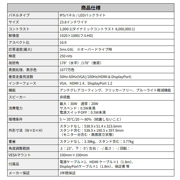 ■23.8型液晶ディスプレイ