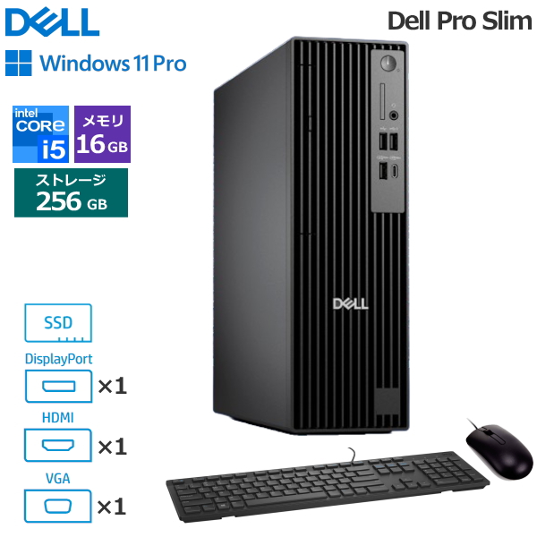 法人限定 Dell Pro Slim デスクトップパソコン 高速SSD 256GB メモリ 16GB Windows11 Pro Core i5-14500 vPro SSD DVDスーパーマルチ DTOP114-004N1