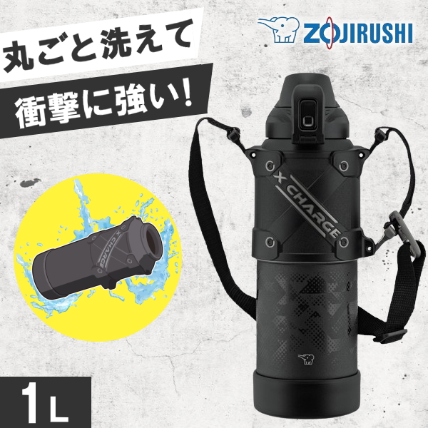 象印 水筒 シームレス 1リットル 保冷 直飲み ワンタッチ ショルダー 広口 SD-HB10 ブラック ステンレスクールボトル ZOJIRUSHI SDHB10 SD-HB10-BA クールボトル