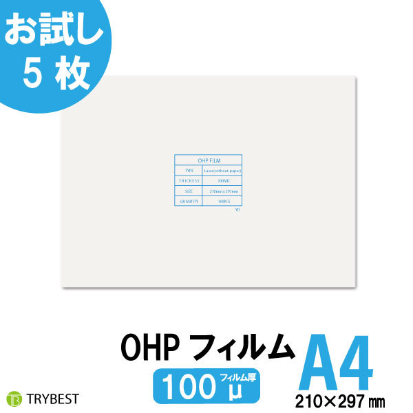 OHPフィルム A4 5枚 レーザープリンター用 100ミクロン 両面 印刷透明シート 210mm×297mm お試し 送料無料