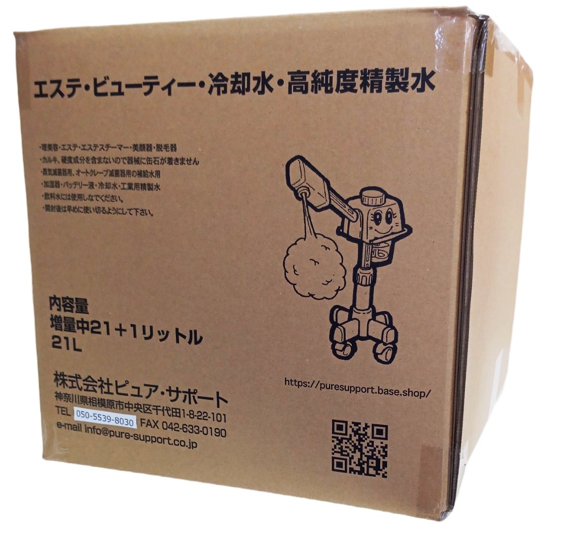 期間限定セール 精製水 20L プラス1L 総容量 21L 増量中 コック付き 高純度精製水 エステ スチーマー オートクレーブ 滅菌器 工業用精製水