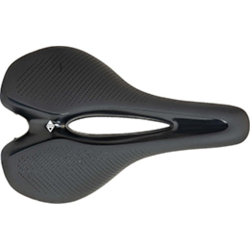 ポジションが決まりやすく、摩擦抵抗の低いショートノーズサドルです。前傾姿勢でのペダリングにも対応する形状です。「モーディブ」より幅が広く設計されています。