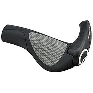 カーボンバーにも使用可能なクランプ構造のGP2。耐候性に優れたラバー素材を採用しています。滑り止めが施された角度調節可能なショートバーエンド付。