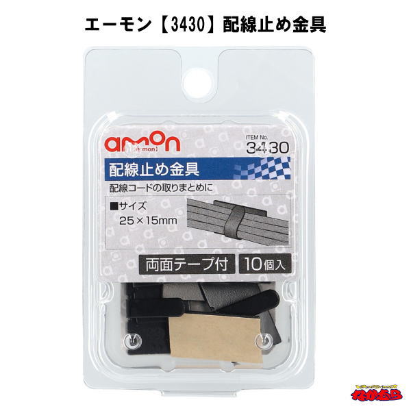 エーモン【3430】配線止め金具 両面テープ付き 10個入