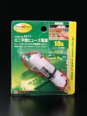 ヒューズボックスからの電源取り出しに エーモンE511 ミニ平型ヒューズ電源 10A