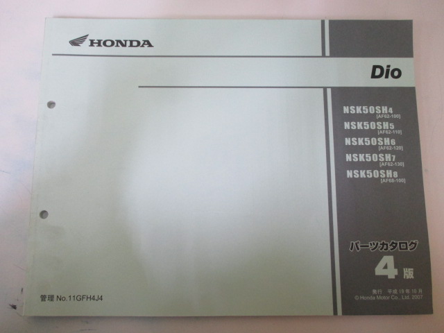 ディオ パーツリスト 4版 ホンダ 正規 中古 AF62 AF68 NSK50SH AF62-1000001-1099999 AF62-1100001〜1199999 AF62-1200001〜1299999 5