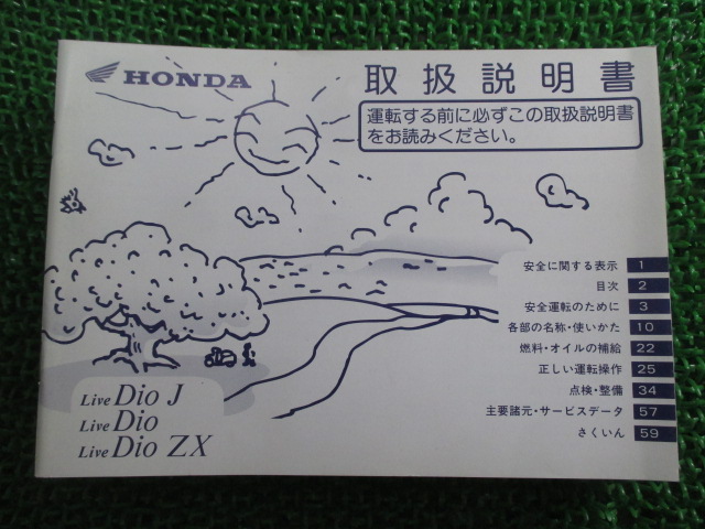 こちらの商品はライブディオ/ライブディオJ/ライブディオZXの取扱説明書となっております。 写真でご覧の通り少々使用感はございますが、利用上問題となる 油による【字の消え】破れによる【ページの欠損】等はございません。 簡易的な各部の整備・調整方法なども記載されております。 買取査定時に取扱説明書や純正工具の有る無しは買取金額に大きく影響しますよ! ちょっとした事ですが、愛車の付加価値を上げる為に揃えておきましょう! 取扱説明書は整備時にあると役立ちますしね♪ メーカー:ホンダ 対応車種:ライブディオ/ライブディオJ/ライブディオZX 発行:2001年1月 即日発送いたしますのでお急ぎの方どうぞ ※お届けする商品は写真に写っている物が全てです。