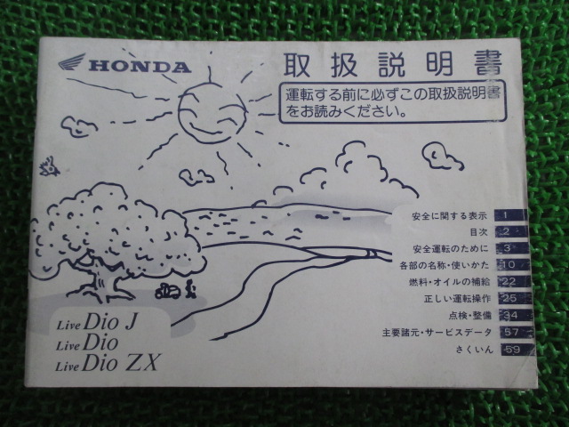 こちらの商品はライブディオ/ライブディオJ/ライブディオZXの取扱説明書となっております。 写真でご覧の通り少々使用感はございますが、利用上問題となる 油による【字の消え】破れによる【ページの欠損】等はございません。 簡易的な各部の整備・調整方法なども記載されております。 買取査定時に取扱説明書や純正工具の有る無しは買取金額に大きく影響しますよ! ちょっとした事ですが、愛車の付加価値を上げる為に揃えておきましょう! 取扱説明書は整備時にあると役立ちますしね♪ メーカー:ホンダ 対応車種:ライブディオ/ライブディオJ/ライブディオZX 発行:2001年1月 即日発送いたしますのでお急ぎの方どうぞ ※お届けする商品は写真に写っている物が全てです。