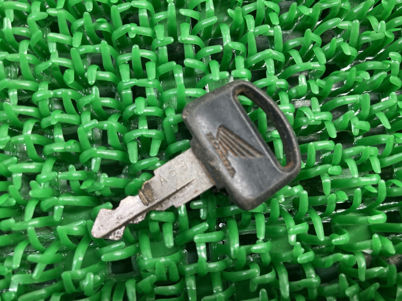 こちらの商品、写真でご覧の通り使用済み純正キーとなっております。 キー番号とシリンダー番号が一致すれば、そのまま使用できる場合がございます。 ヤフオク・ヤフーショッピング上ではなかなか出てこない珍しい品です! ヘッド部分を加工して再利用やコレクションなどに如何でしょうか? 当時物の大変希少な商品となっております。 お探しの方、この機会に是非どうぞ! 右溝 キー番号:A59 全長:46mm ヘッド下キー部分全長:26.5mm ヘッド下キー部分幅:9mm 参考データ ●メーカー:ホンダ ●車名:モンキー/ゴリラ ●型式:Z50J/AB27 ※お届けする商品は写真に写っている物が全てです。