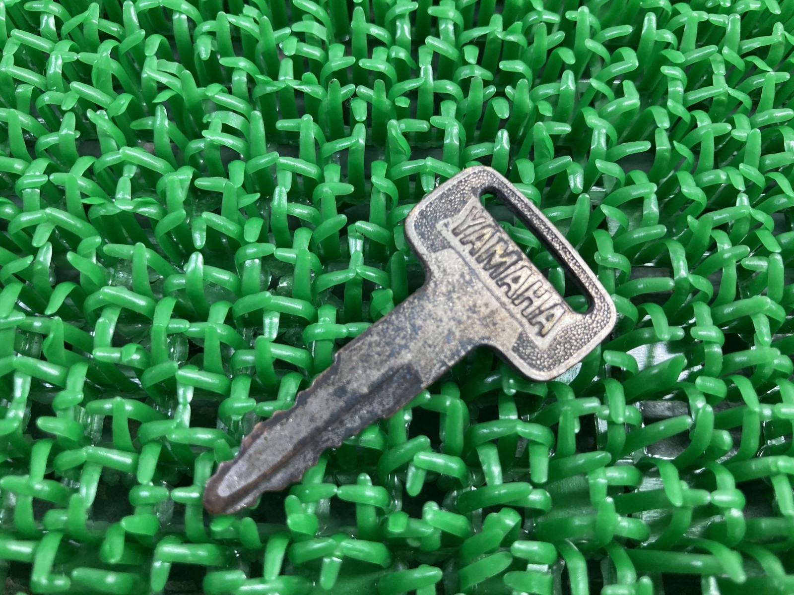 こちらの商品、写真でご覧の通り使用済み純正キーとなっております。 キー番号とシリンダー番号が一致すれば、そのまま使用できる場合がございます。 ヤフオク・ヤフーショッピング上ではなかなか出てこない珍しい品です! ヘッド部分を加工して再利用やコレクションなどに如何でしょうか? 当時物の大変希少な商品となっております。 お探しの方、この機会に是非どうぞ! 左溝 キー番号:B52021 全長:48.4mm キー部分全長:33.3mm キー部分幅:9mm 参考データ ●メーカー:ヤマハ ●車名:タウンメイト90 ●型式:T90D ※お届けする商品は写真に写っている物が全てです。