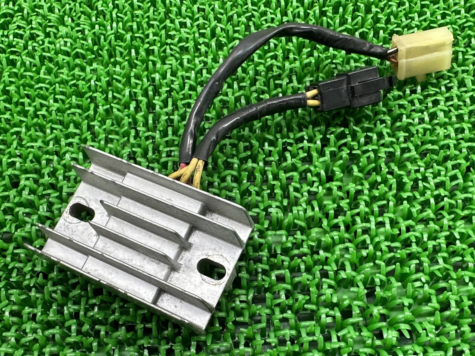 こちらのレギュレーター、写真でご覧の通り全体的に使用感ございますが、割れカケなどの欠点ございません。 機能上問題となる欠点ございません。 動作チェックOK!そのまま使えるコンディションです。 バッテリーの充電不足や過充電はこの部品を変えてみましょう! ヘッドライトやその他電装品の不安定も解消する事がありますよ♪ 修復素材やカスタム素材に如何でしょうか? ご活用いただける方、よろしくおねがいします! 参考データ ●メーカー:スズキ ●車名:GSX250Sカタナ ●型式:GJ76A ※お届けする商品は写真に写っている物が全てです。