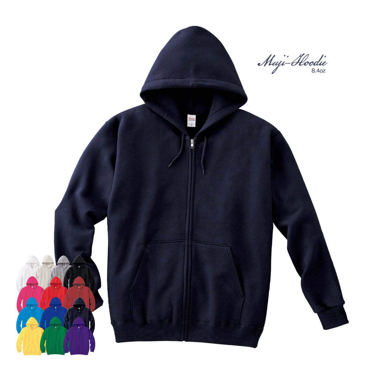 パーカー メンズ レディース ジップ アップ ファスナー 無地 8.4oz ライトパーカー 軽量 チャック ジッパー 綿 軽い