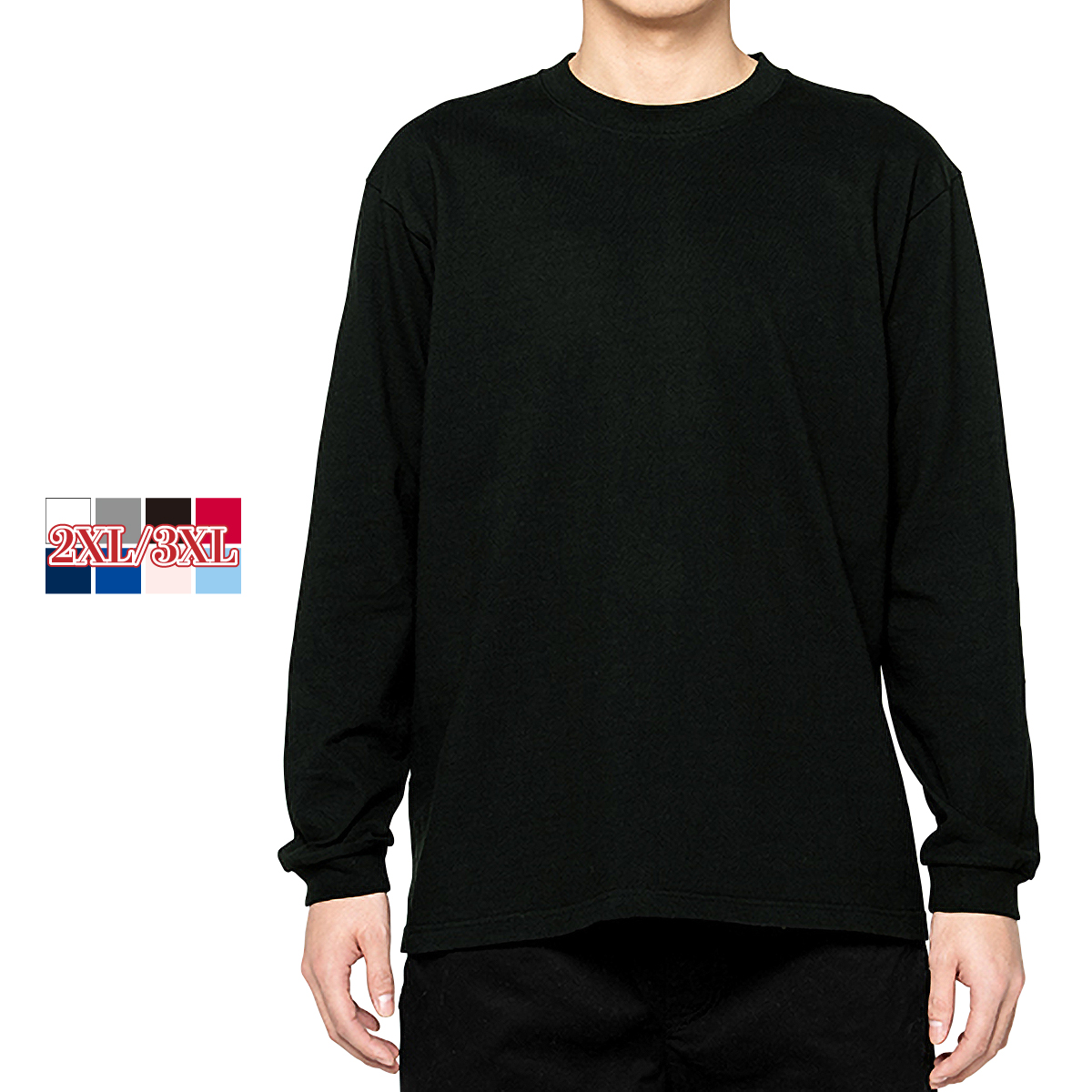 大きいサイズ メンズ 長袖 tシャツ 無地 Tシャツ 厚手 リブ 袖 2XL 3XL 大きめ ティーシャツ ロンT ファッション