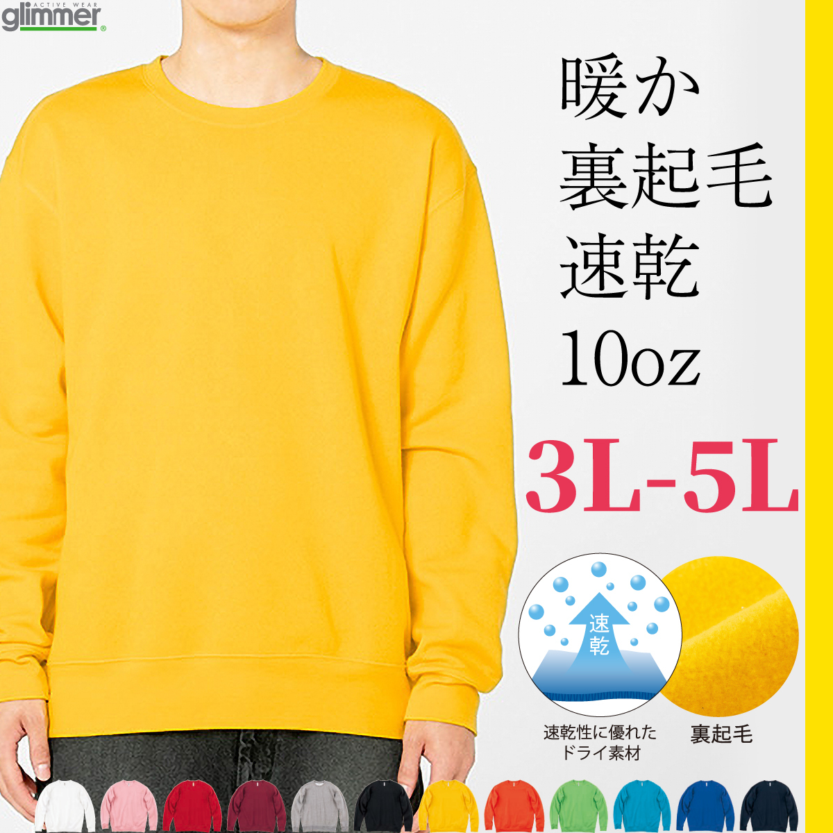340g/m2(10.0oz) 裏起毛