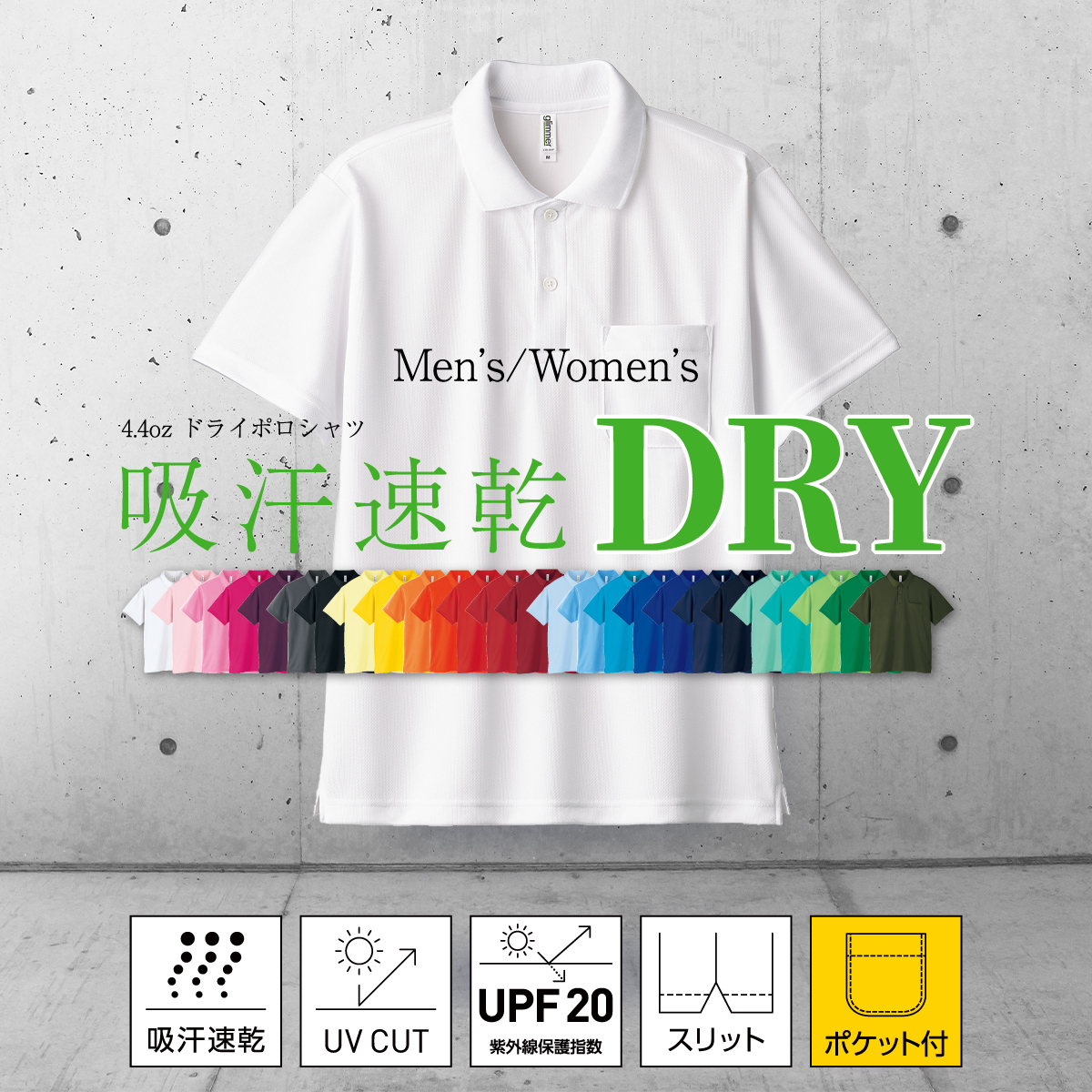 吸汗速乾、日焼け対策にも有効なDRY MESH生地はスポーツやアウトドアにマッチ。