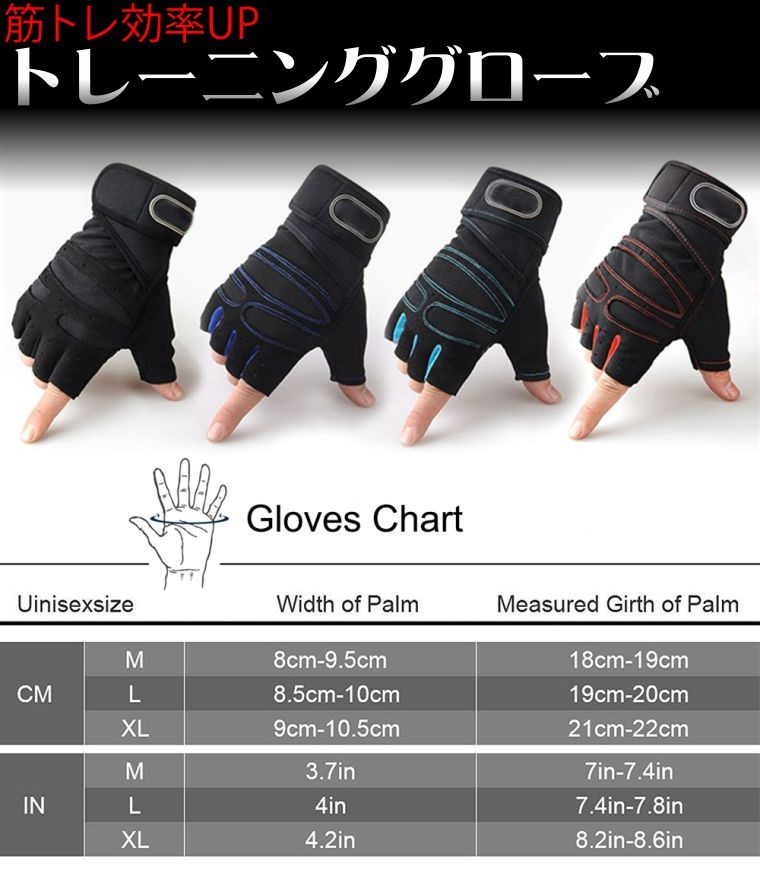 ・ジムでのトレーニングや自宅での筋トレ時に便利なトレーニンググローブ。