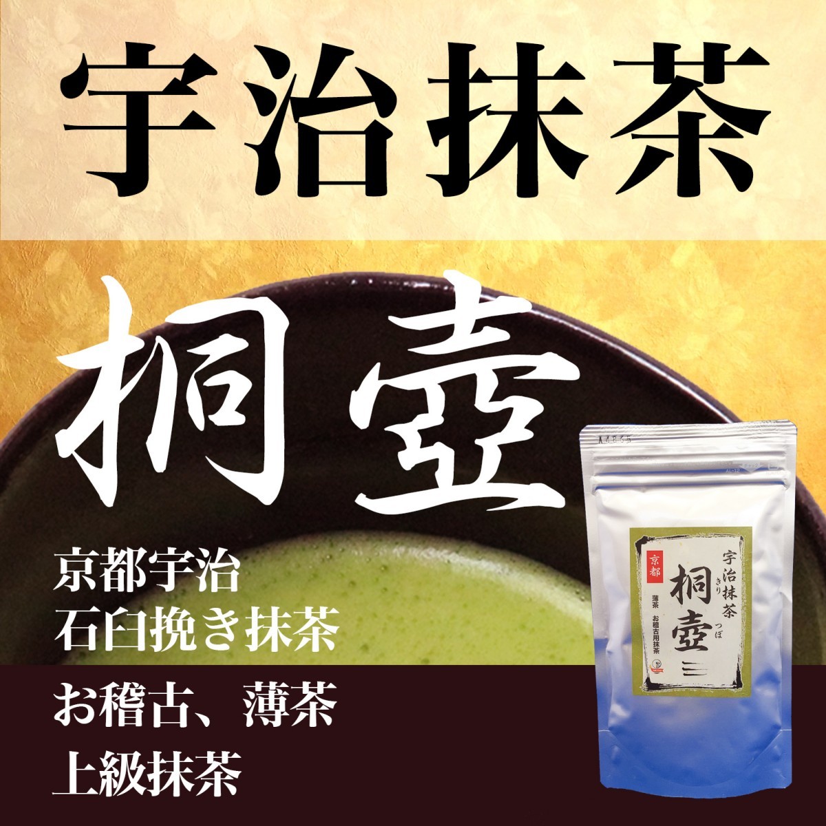 上級抹茶 薄茶 宇治抹茶 桐壺100g 京都府産100% 粉末 パウダー 送料無料