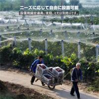 強度も高く、破れにくいです。使用寿命は3-4年程度と長く、作物を収穫したら、このネットを収納して来年も使えます。