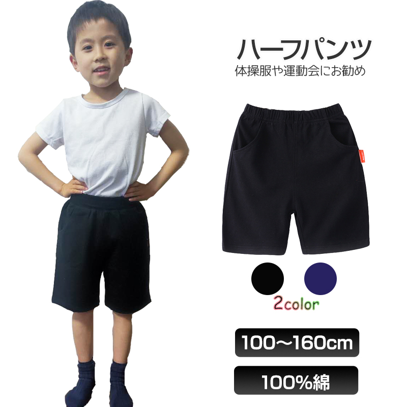 ハーフパンツ 半ズボン 1枚 100%綿 キッズ 子供 100 110 120 130 140 150 160 体操服 スポーツ 運動会 男子 女子 幼稚園 小学生 ポケット有 コットン 吸汗速乾
