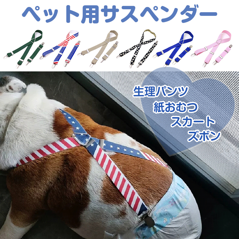 犬用サスペンダー ペット 犬 猫 サスペンダー 服 オムツ おむつ ズレ防止 固定 クリップ ベルト 伸縮 調整可 マナーパンツ 介護用 老犬 散歩 かわいい おしゃれ