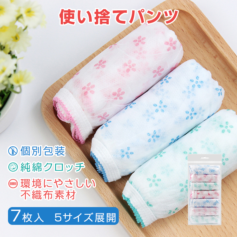 使い捨てパンツ 7枚入 個包装 下着 旅行用 純綿 軽量 締め付けない 滅菌処理済 ペーパーショーツ 不織布 レディース 女性 妊娠 産後 出張 病院 入院 介護 災害用