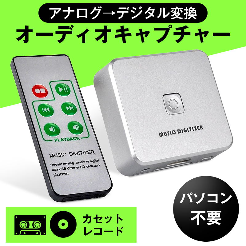 オーディオキャプチャー MP3 デジタル変換 USBメモリ SDカード 保存 PC不要 カセット レコード MD CD ラジオ テレビ 録音 再生 コンパクト オーディオレコーダー