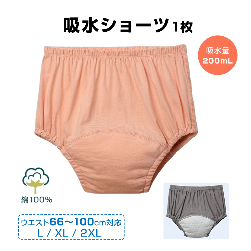 吸水ショーツ 1枚 尿漏れケアパンツ 失禁パンツ 女性 婦人用 綿100% 大容量 吸収 200mL サニタリーショーツ 漏れない 蒸れない 通気性 介護 生理 シニア 高齢者