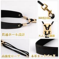 幅広の本革パッドと裏面の柔らかいクッション素材が、首元の痛みを軽減します。