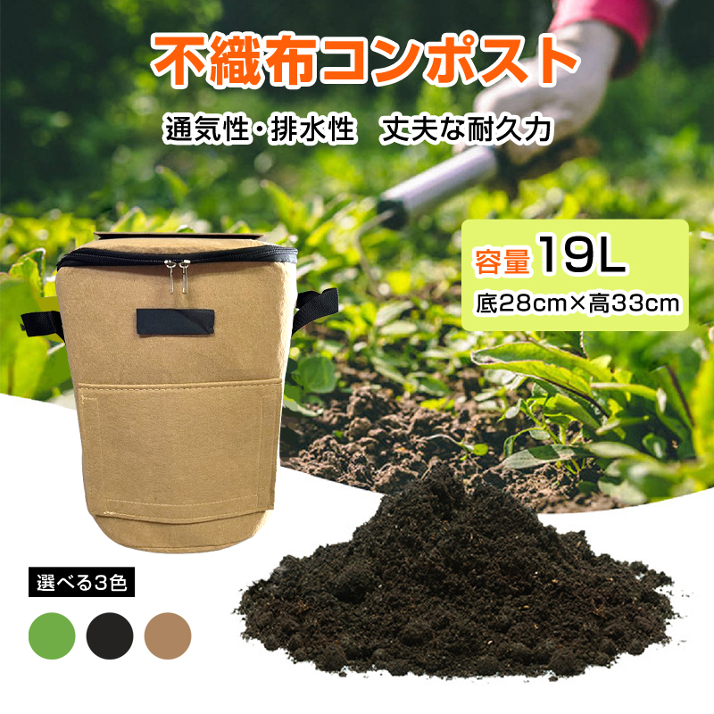 コンポストバッグ 小さい 19L コンポスト 不織布 自立式 家庭用 生ゴミ処理 バッグ 容器 落ち葉 有機肥料 園芸 ガーデニング ベランダ 畑 庭 エコ 堆肥 家庭菜園