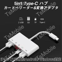 白TypeCハブ 5in1 タイプc 変換アダプターケーブル iPad Type-C Hub 多機能 USB3.0ポート microSD/TF/SDカードリーダー 急速充電 高速データ転送 USB-C ハブ