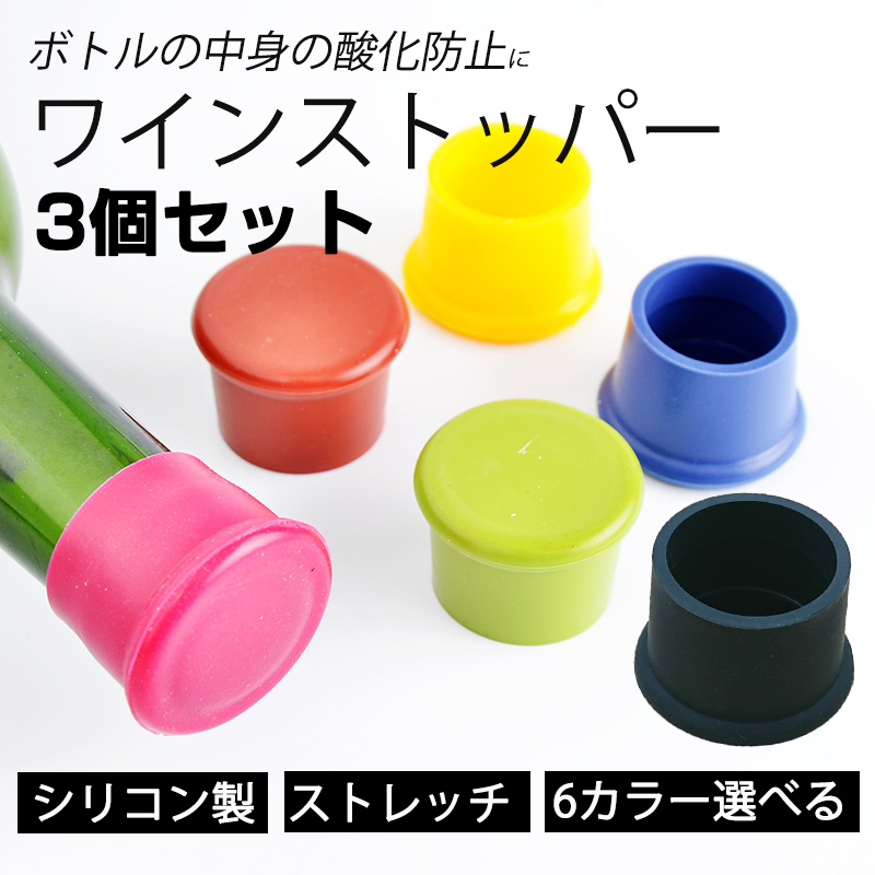 シリコン製のワインストッパー3個セットです。全6色の中から好きな色をお選びいただけます。