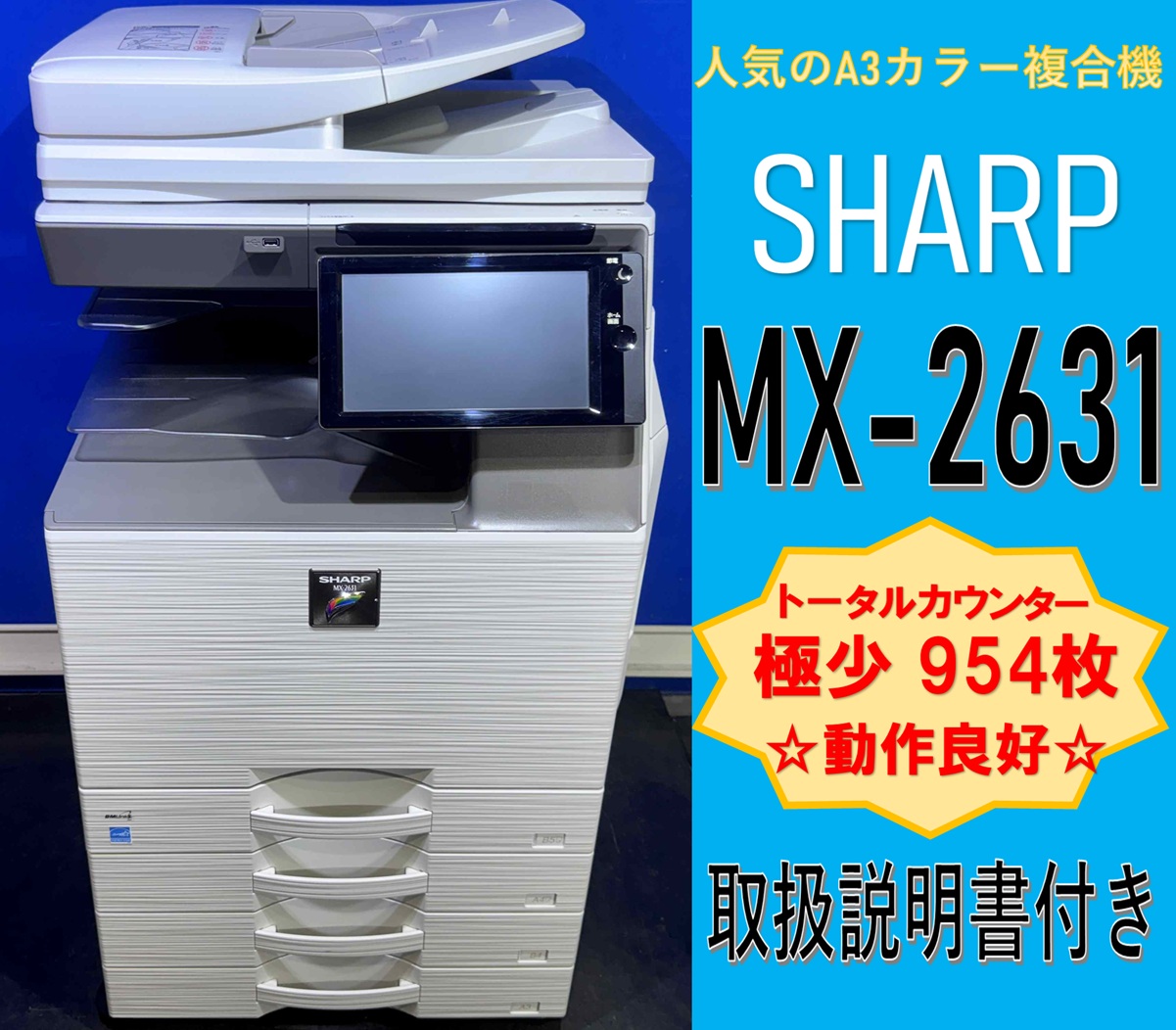 【越谷発】【SHARP】A3デジタルフルカラー複合機☆ MX-2631 ☆【極少】カウンター 954枚 ☆ 動作確認済み ☆(13248)