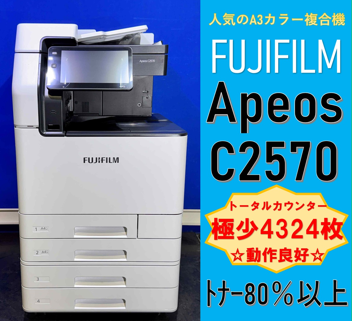 【越谷発】【FUJIFILM】A3カラー複合機☆ Apeos C2570 ☆ 極少カウンター 4,324枚 ☆動作確認済み☆(13333)