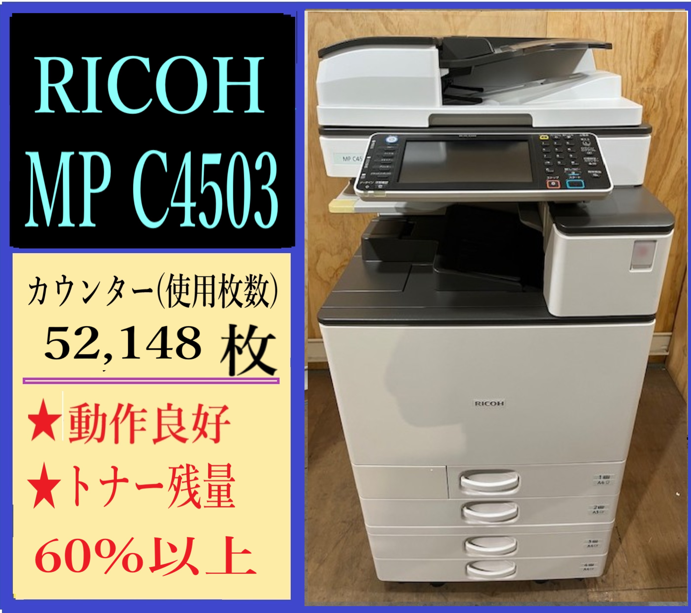 【大阪発】値下げしました!【RICOH】 MP C4503 カウンター52,148枚 (7564)