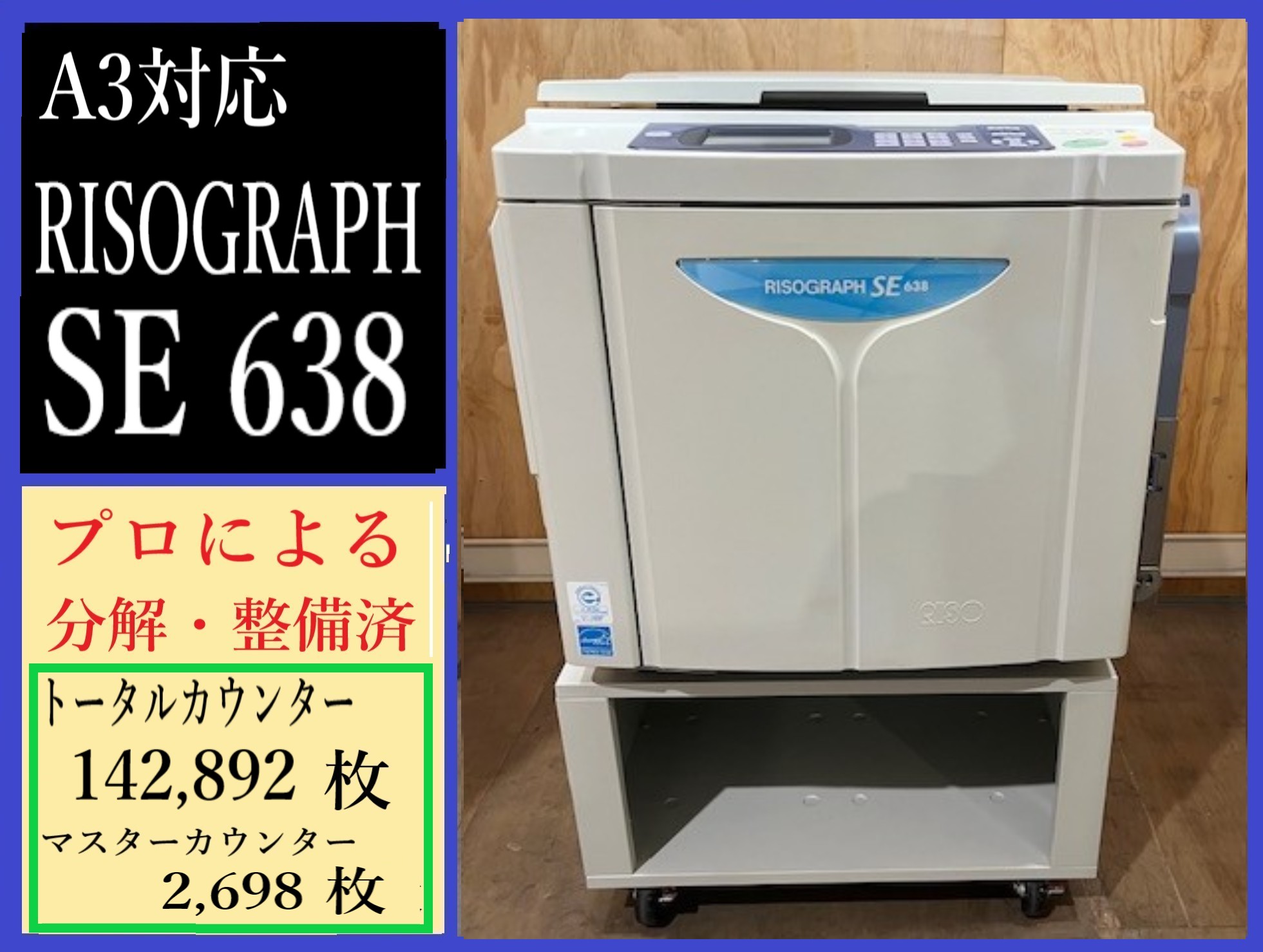 【大阪発】【RISO】A3対応デジタル 印刷機 ★SE638★ カウンター142,892枚 ☆分解・整備済み☆(7590)