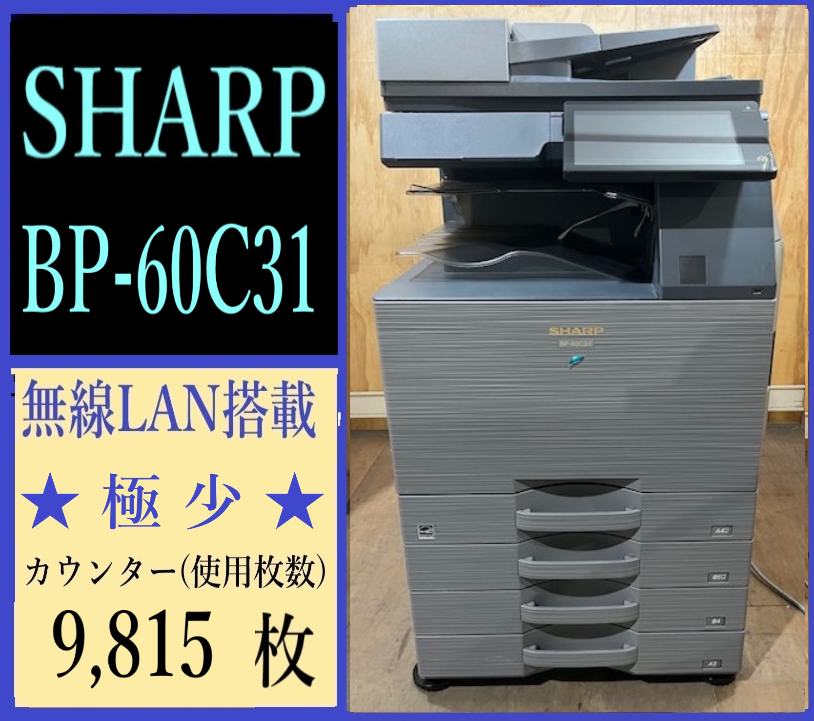 【大阪発】【SHARP】A3カラー複合機 ☆ 【極少】BP-60C31 ☆ カウンター 9,815枚 ☆分解・整備済み☆(7602)