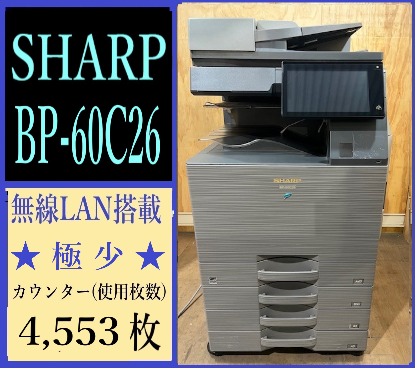 【大阪発】【SHARP】A3カラー複合機 ☆ 【極少】BP-60C26 ☆ カウンター 4,553枚 ☆分解・整備済み☆(7606)