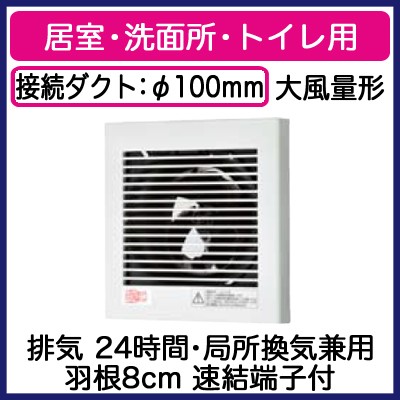 FY-08PDX9D Panasonic パイプファン スタンダードタイプ 格子ルーバー形 居室・洗面所・トイレ用 大風量形 排気 24時間・局所換気兼用 速結端子付