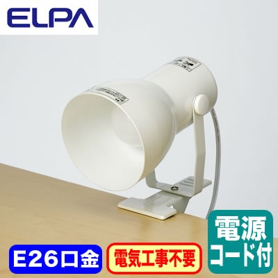 【同一ストア内で税別15000円以上ご購入で送料無料(沖縄・離島など一部地域は除く) 】 住宅用照明器具 ELPA 朝日電器 クリップライト SPOT-BNE26C-PW 検索用カテゴリ24 【スイッチ付】 【コード付】 【電気工事不要】 【ランプ別売】 【E26口金】