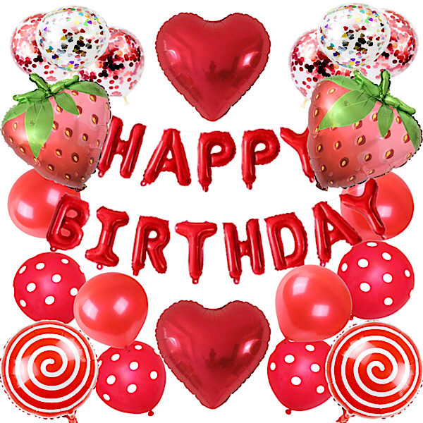 ストロベリー 誕生日 飾り付け バルーンセット 風船 室内装飾 バースデーパーティー 女の子 大人 女子会 バレンタイン レッド 還暦