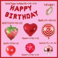 真っ赤なハートと可愛いイチゴ、甘いテイストのキャンディなど人気のアイテムもバースデーバルーンセットに詰め込みました。