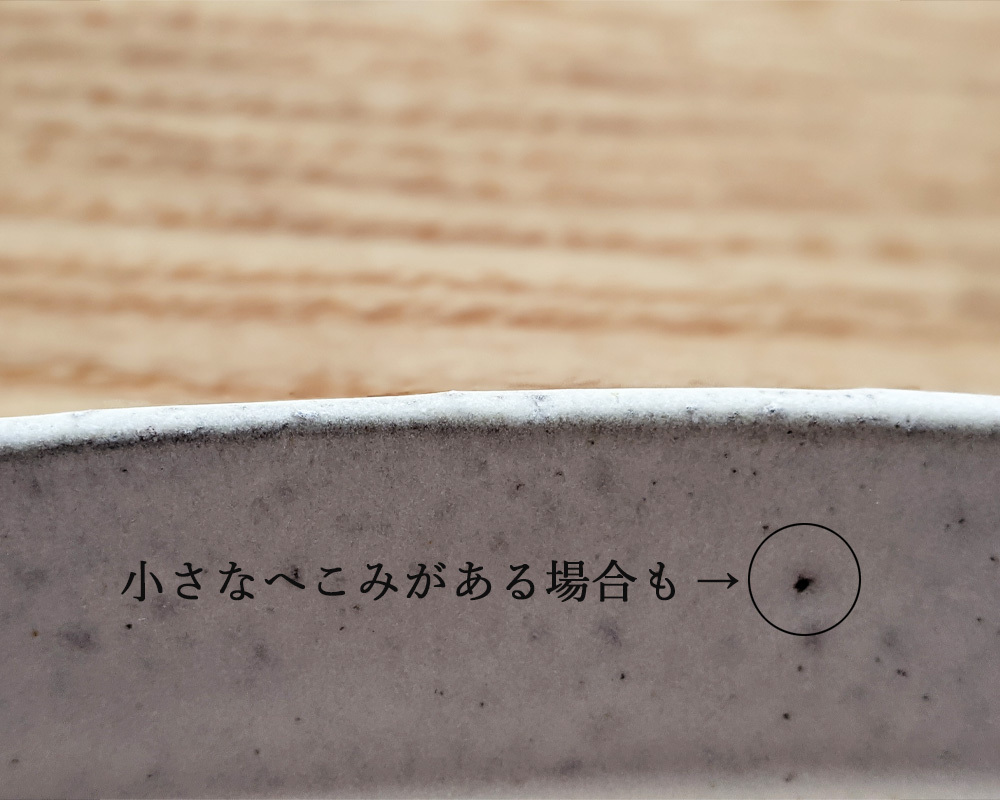 器を焼く際に器内に残った空気やホコリなどが焼かれ、小さなへこみとして残る場合があります。
