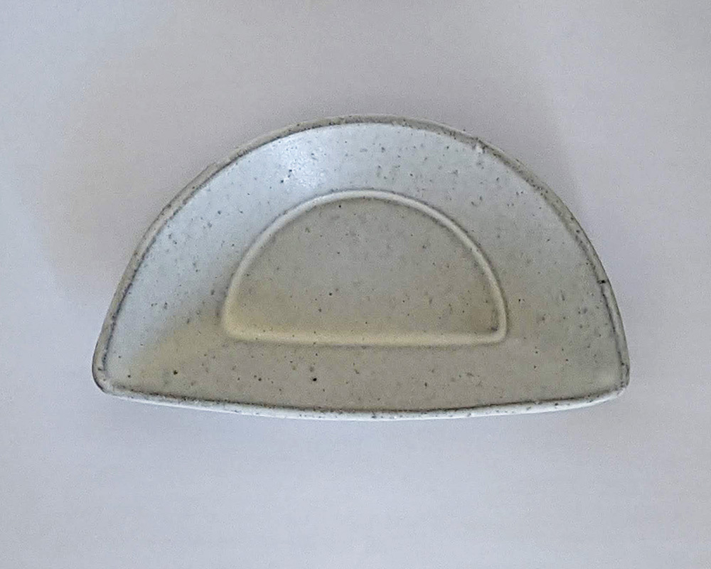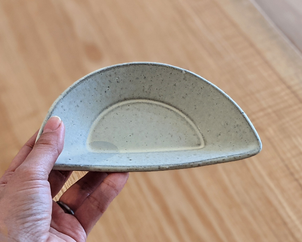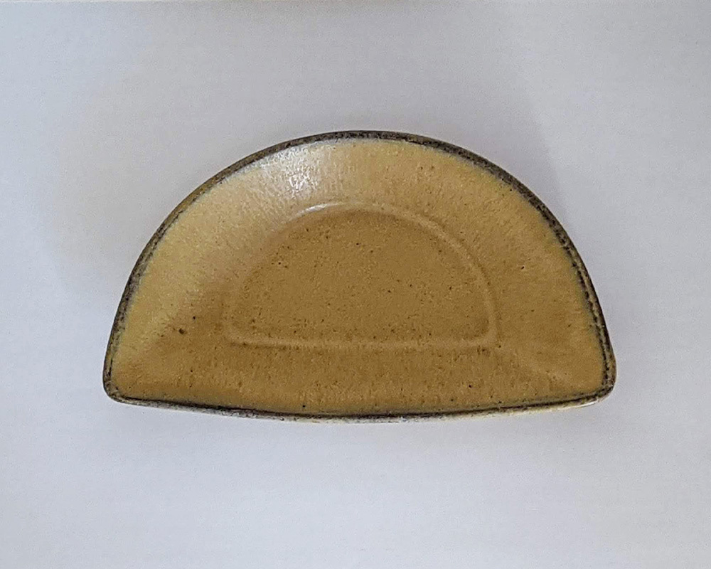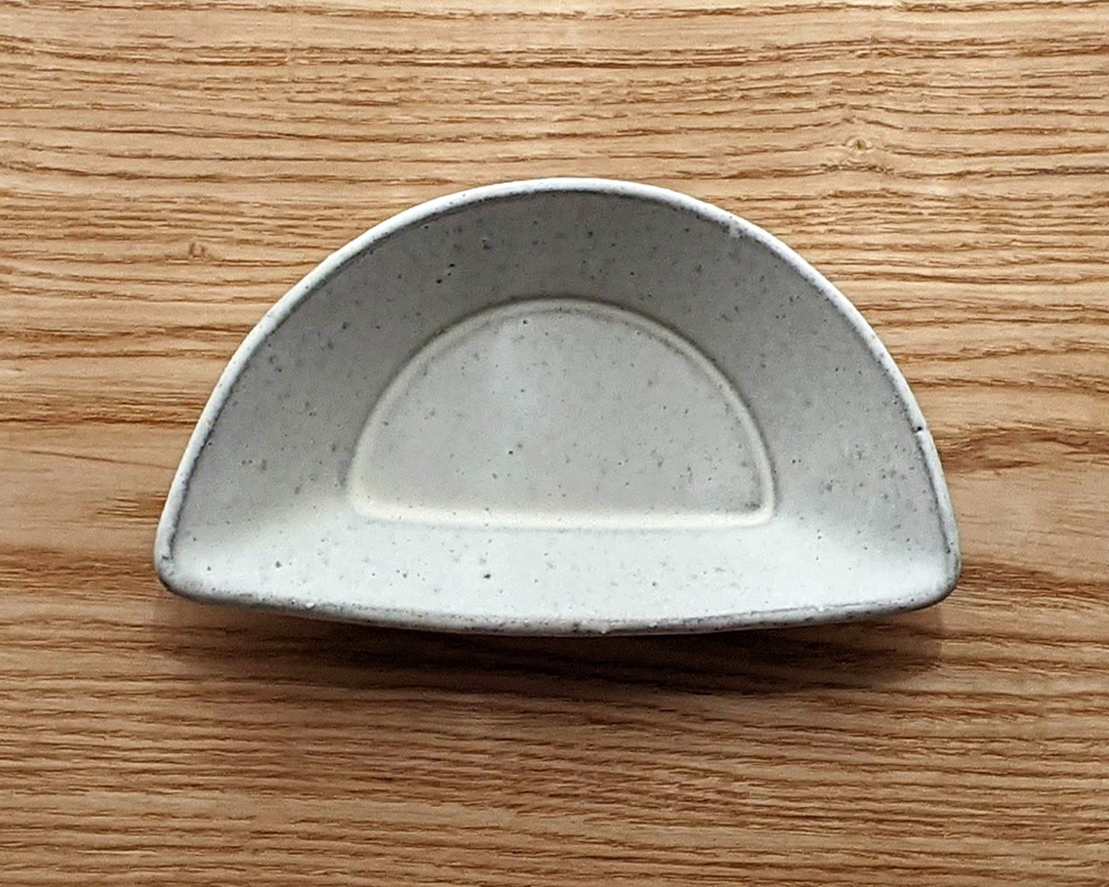 まあるい円形のフォルムが可愛い 半円型のおつまみ皿 半円のような、どこか餃子のような独特なフォルム。