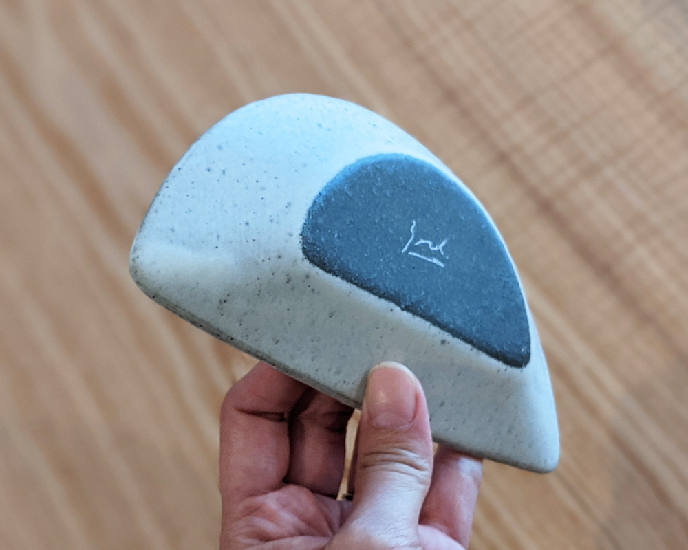 底面は黒土を残し ロゴがワンポイント 器の底面にはあえて釉薬をかけておらず、黒土の素地が見えています。
