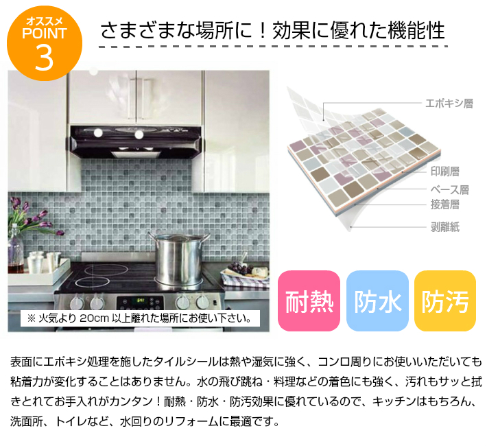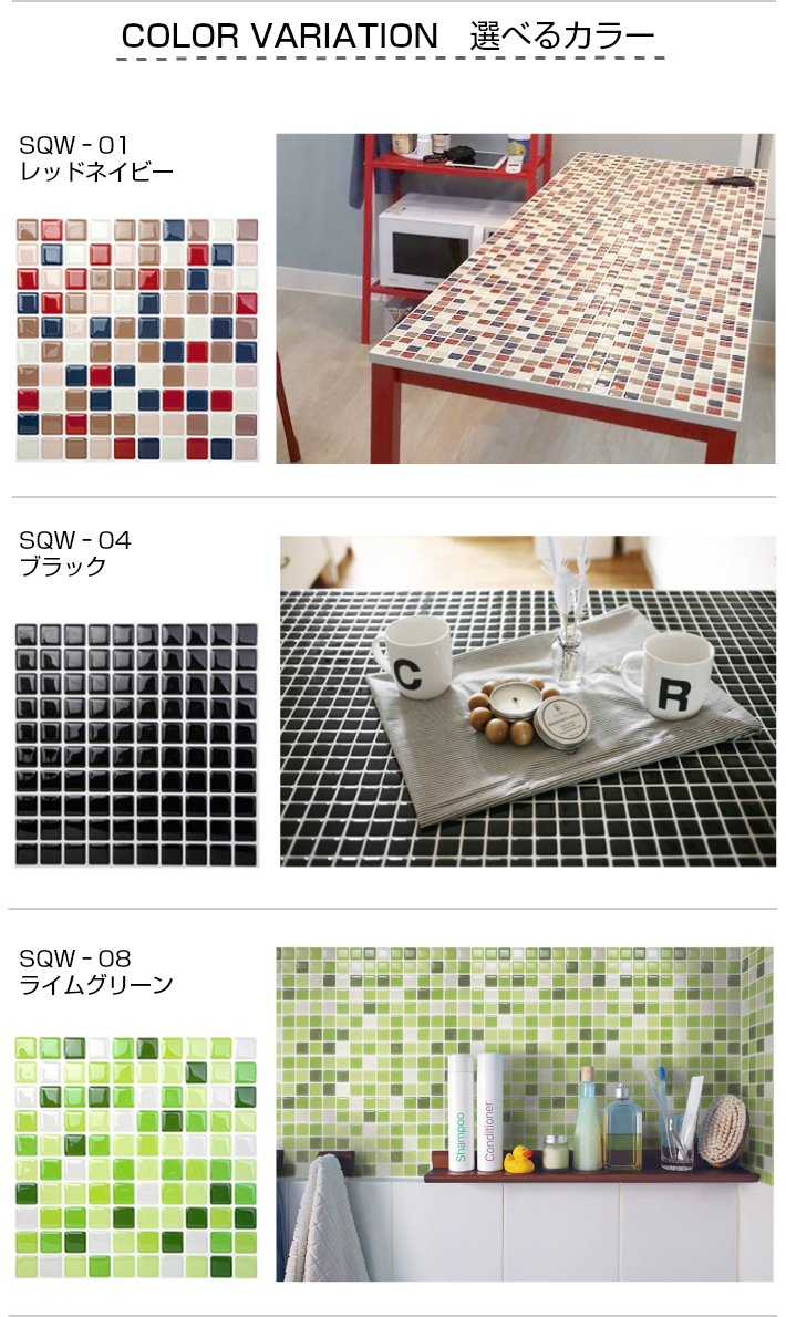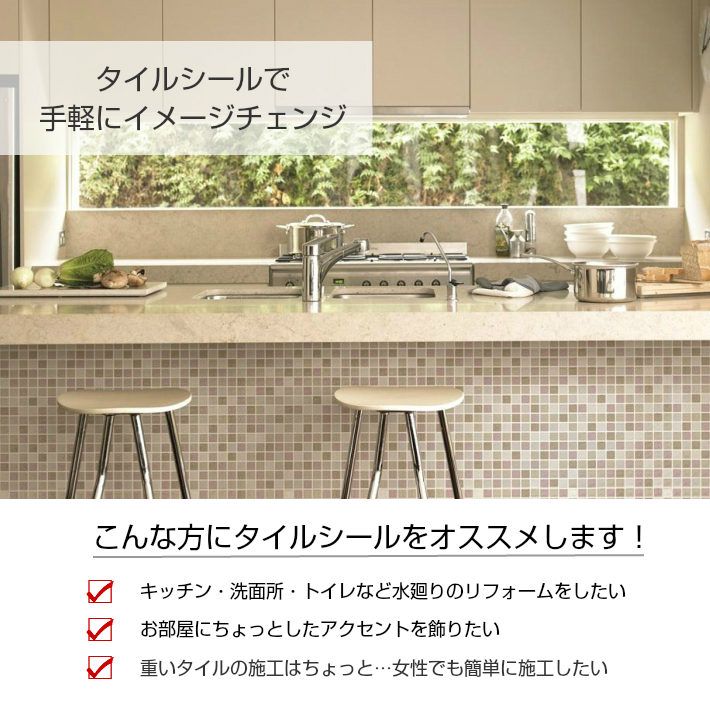 タイルシール 防水 北欧 洗面所 キッチン トイレ インテリア モザイク 耐熱 壁に貼る DIY おしゃれ
