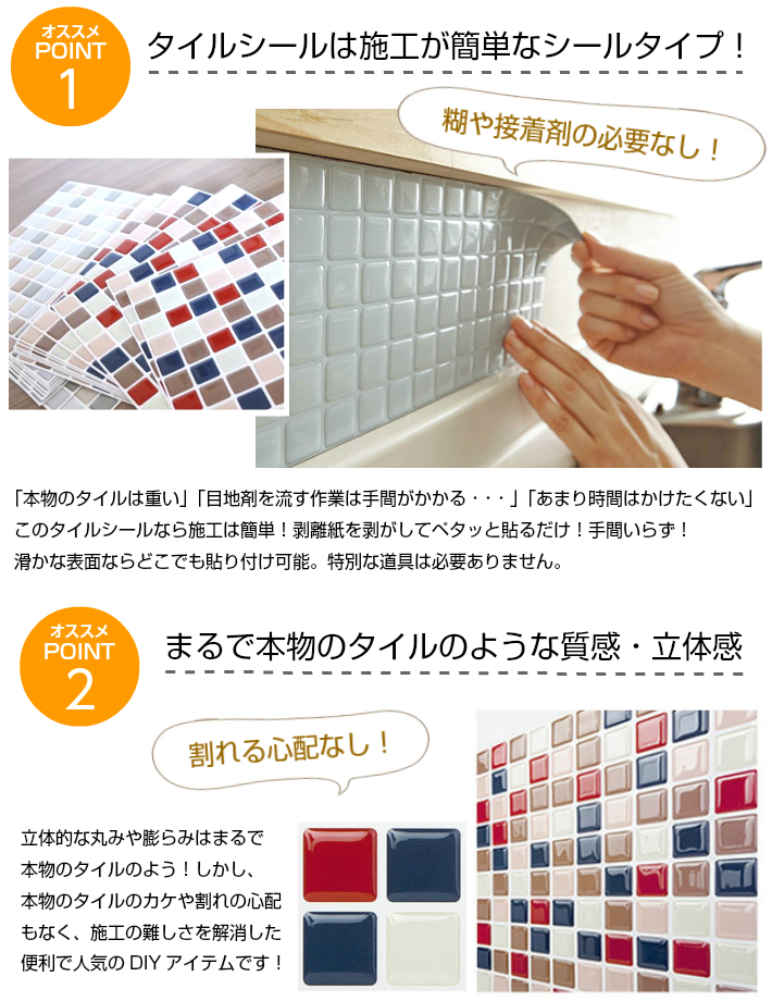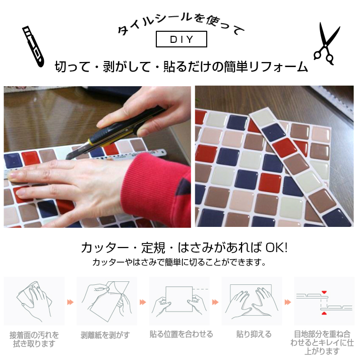 ・「お試し1枚」切って貼るだけの簡単タイルシール!