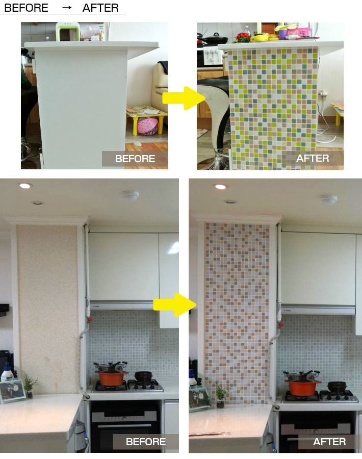 ・殺風景だった空間が、落ち着いた色合いのタイルで一気におしゃれな空間に生まれ変わります。
