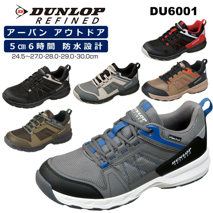 トレッキングシューズ メンズ スニーカー トレッキング ローカット 防水シューズ ダンロップ リファインド DU6001 防水 軽量 ワイド 幅広 4e 紐 靴 大きいサイズ