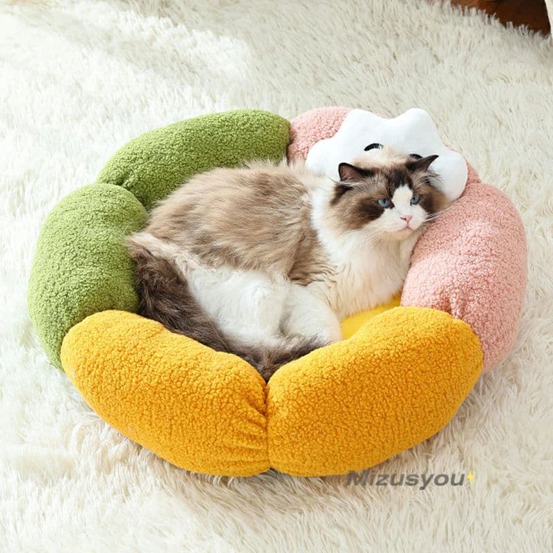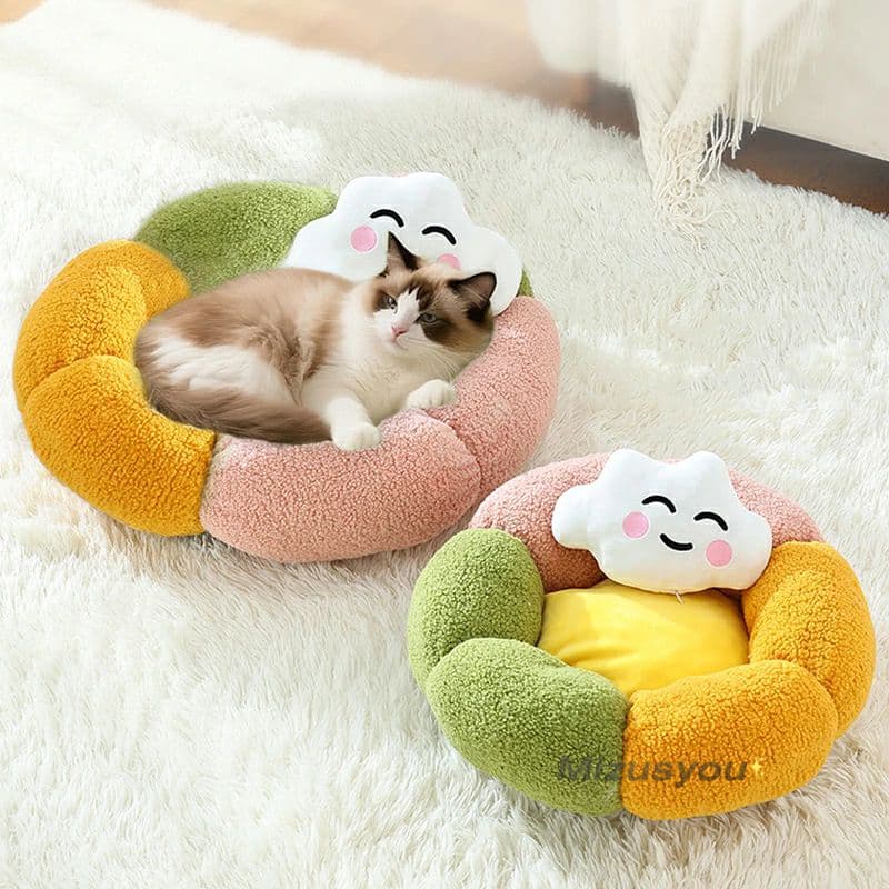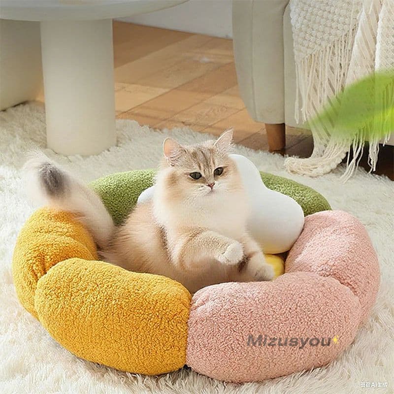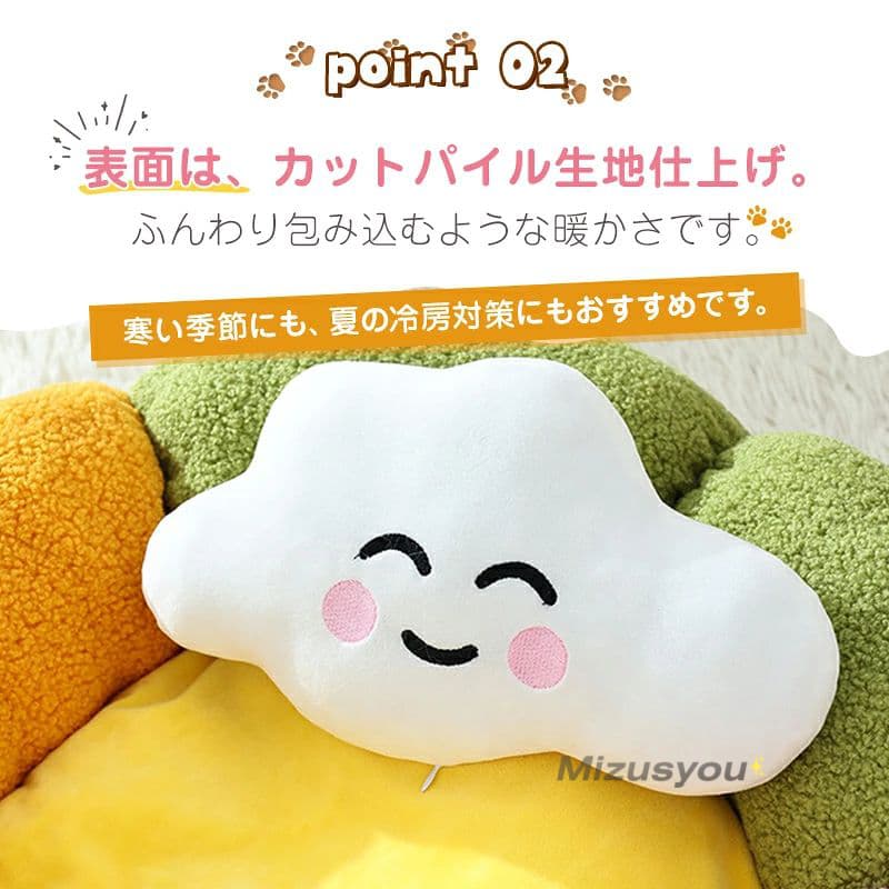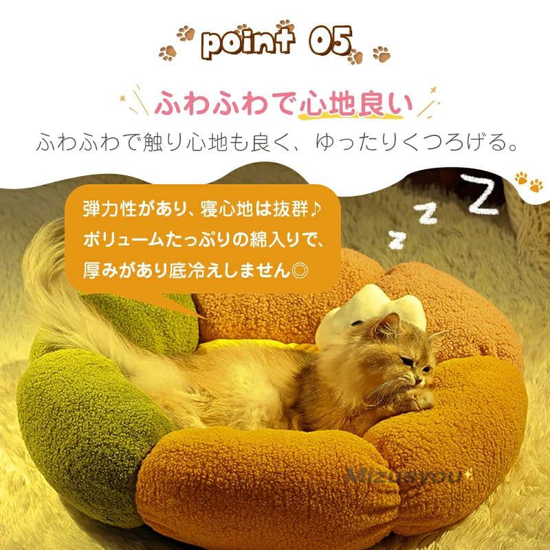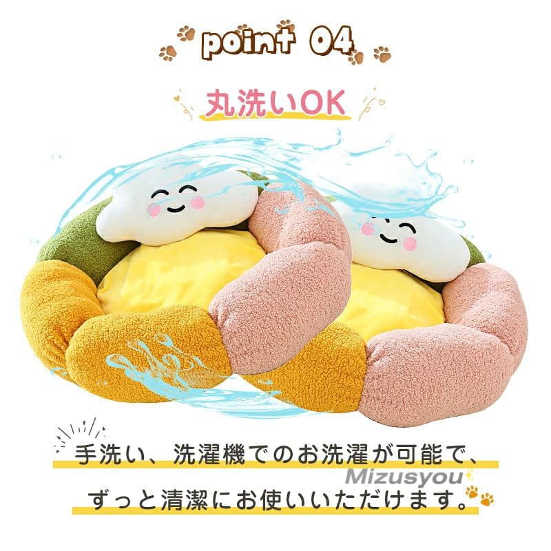 ペットベッド 猫 犬 ベッドペット ハウス 犬用ベッド 猫用ベッド 洗える 枕付き 丸洗い 暖かい 花型 ふわふわ ふかふか もこ